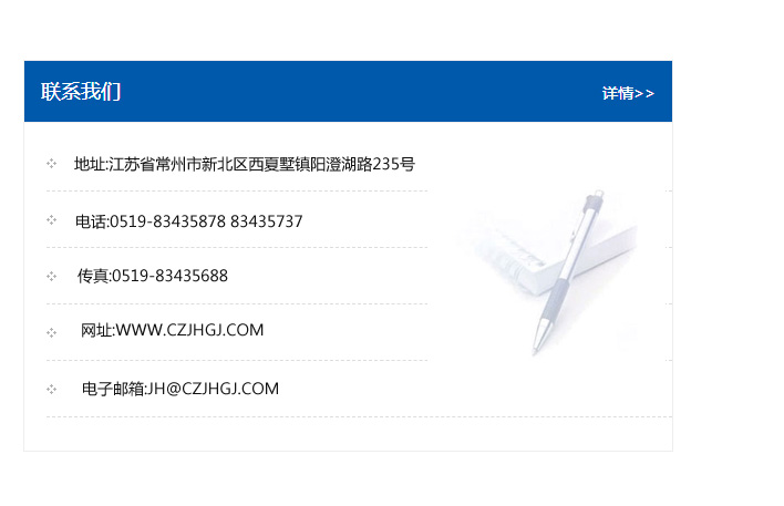 地址:常州市新北區友邦商務大廈1幢16、17層  電話:0519-85101652  傳真:0519-85112595  郵編:213022  網址:www.cz-jiayue_cn.jlbsjs.com  郵箱:xiajifengaa@163.com